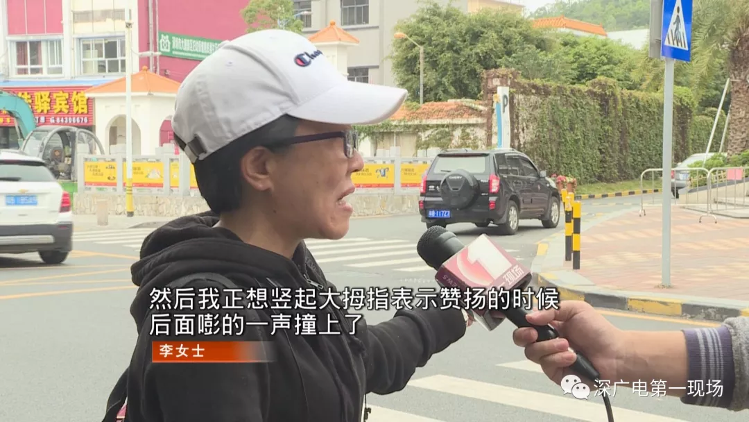 李女士說,這輛白色小汽車是主動停下讓行的,沒想到才停下來幾秒鐘,就被后面一輛車直接撞到車尾,這讓司機(jī)始料未及,他趕緊下車查看。