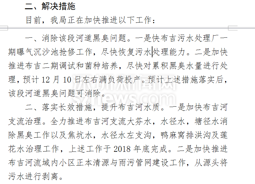 針對(duì)上述疑問(wèn),龍崗區(qū)環(huán)水局承諾將抓緊推進(jìn)布吉污水處理廠一期曝氣沉沙池?fù)屝薰ぷ?,盡快恢復(fù)污水處理能力,而二期工程也預(yù)計(jì)于12月10日左右滿負(fù)荷投產(chǎn),以上措施落實(shí)后,該環(huán)水局認(rèn)為此段河道黑臭問(wèn)題便可消除。為了保障治水工作長(zhǎng)期有效,環(huán)水局還制定了加快布吉河支流治理及加快推進(jìn)布吉河流域內(nèi)小區(qū)正本清源與雨污管網(wǎng)建設(shè)工作的計(jì)劃。