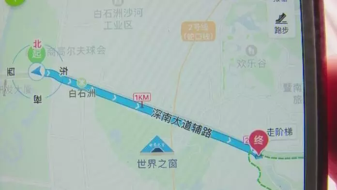 《第一現(xiàn)場》記者也來到位于深南大道上選手抄近道的地點,并進行了實地測算,該位置距離民俗村折返點有2.1公里,一來一回,就是4.2公里,按照配速,大概可以節(jié)省三十分鐘的時間。