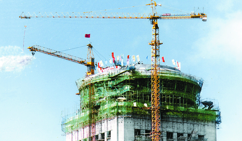 1984年9月4日,國(guó)貿(mào)大廈封頂。 劉廷芳 攝