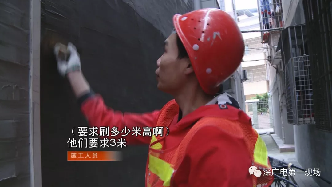 這里是龍華區(qū)觀湖街道辦福樓村里的城中村,這些居民樓的小巷子里,在這兩天來(lái),有不少施工人員正在這里粉刷外墻?,F(xiàn)場(chǎng)施工人員說(shuō),他們只刷房子的底下一層。