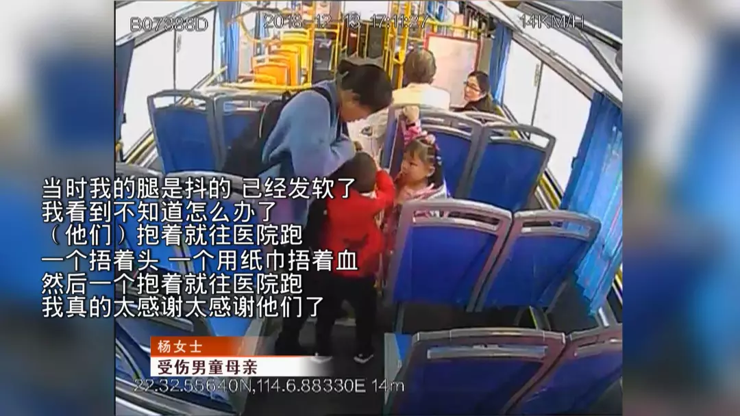 當(dāng)天下午5點(diǎn)20分,楊女士帶著她的一雙兒女,從羅湖區(qū)金光華廣場(chǎng)公交站臺(tái),上了一輛前往文錦渡客運(yùn)站方向的360路公交車。正當(dāng)楊女士帶著大女兒在車廂前部投幣時(shí),楊女士的年僅三歲的小兒子獨(dú)自一人跑向車廂后部。此時(shí)車子啟動(dòng)了,楊女士的兒子不慎摔倒,頭撞在車廂后部的階梯上,血流如注。