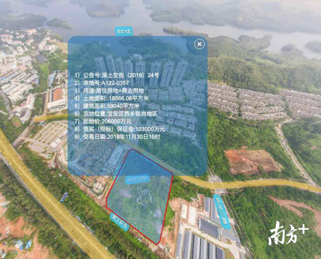 記者查閱發(fā)現(xiàn),該宗地塊周邊有別墅群、高層樓盤及待開發(fā)的居住用地,臨近鐵崗水庫,不遠處有寶安公園。