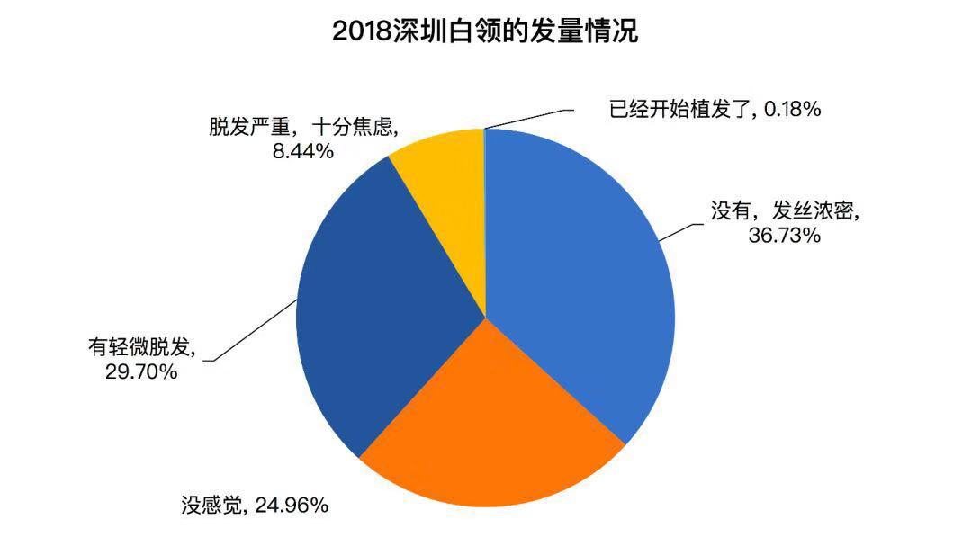 調研數(shù)據(jù)顯示,有36.73%的深圳白領"發(fā)絲濃密"沒有脫發(fā)的煩惱,在全國的發(fā)量豐富程度中排名第14,比較靠前,有近4成深圳白領對自己的發(fā)際線感到擔憂。
