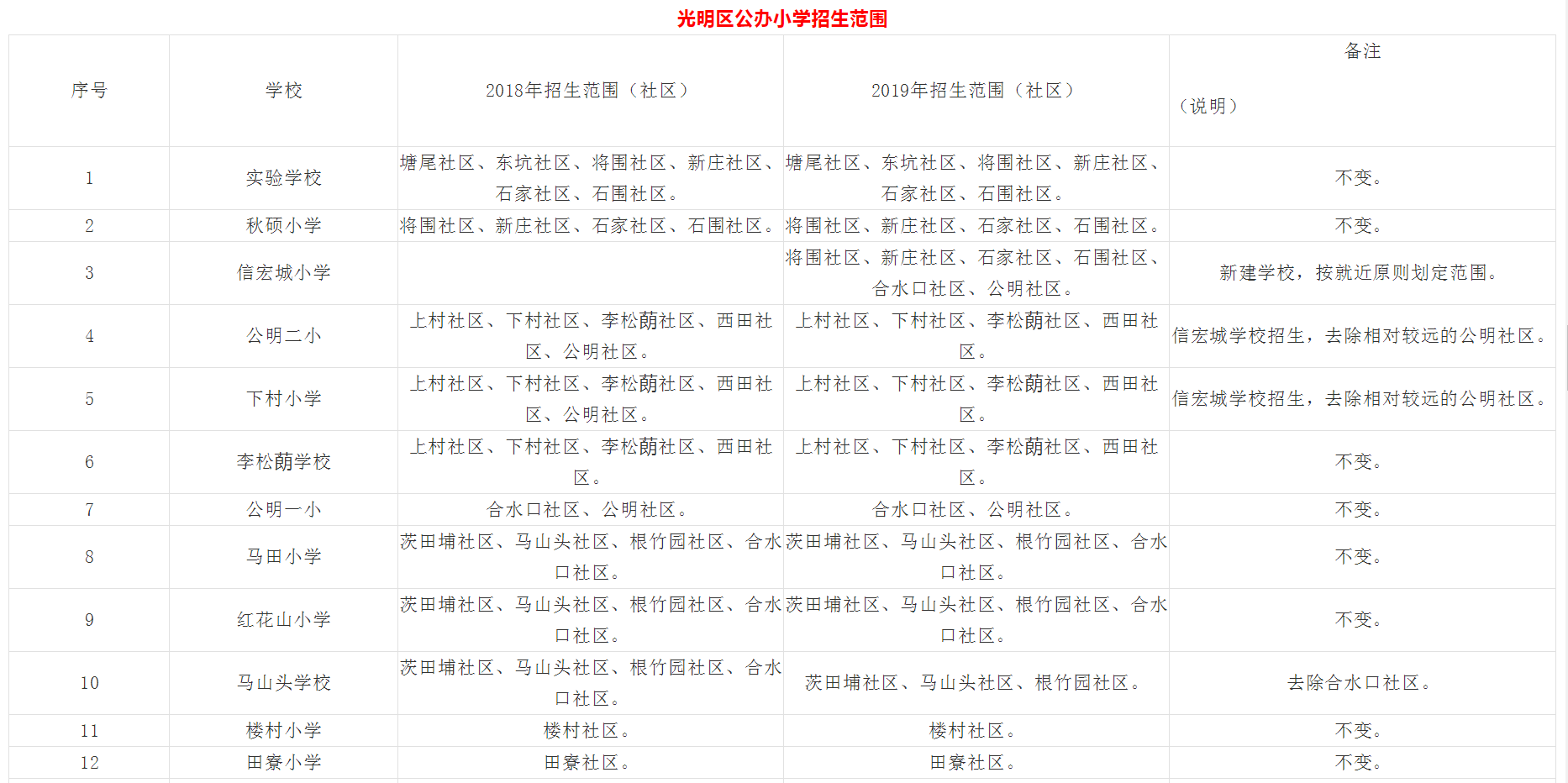 光明區(qū)公布2019年公辦小學(xué)、初中招生片區(qū)和學(xué)位積分方案啦