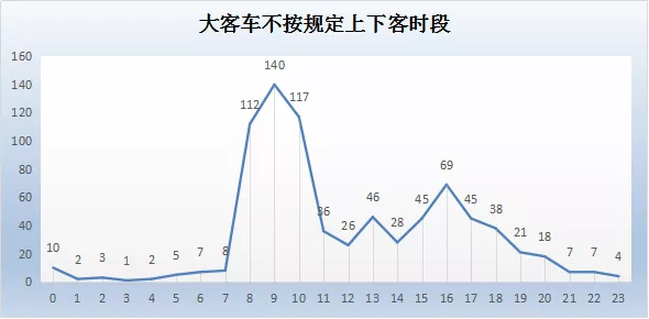 大客車不按規(guī)定上下客主要集中在每天8時至10時