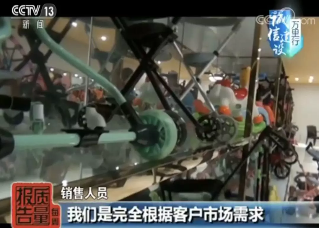 銷售人員:“遛娃神器“這兩年剛出來,沒有專門的生產(chǎn)標(biāo)準(zhǔn),我們就量量,比劃比劃,沒有圖紙。