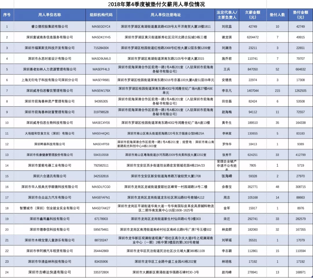 一企業(yè)欠薪高達(dá)140多萬!深圳曝光第4季度24家被墊付欠薪企業(yè)