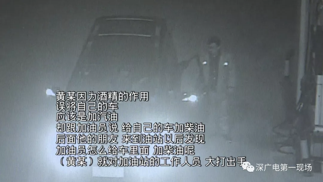 這一幕發(fā)生在寶安區(qū)沙井街道錦繡路的一個(gè)加油站。從監(jiān)控可以看到,凌晨4點(diǎn)左右,一輛桂A牌照的商務(wù)車駛?cè)爰佑驼炯佑?但這油才加到一半,司機(jī)黃某卻突然沖下車,與工作人員發(fā)生爭執(zhí)。