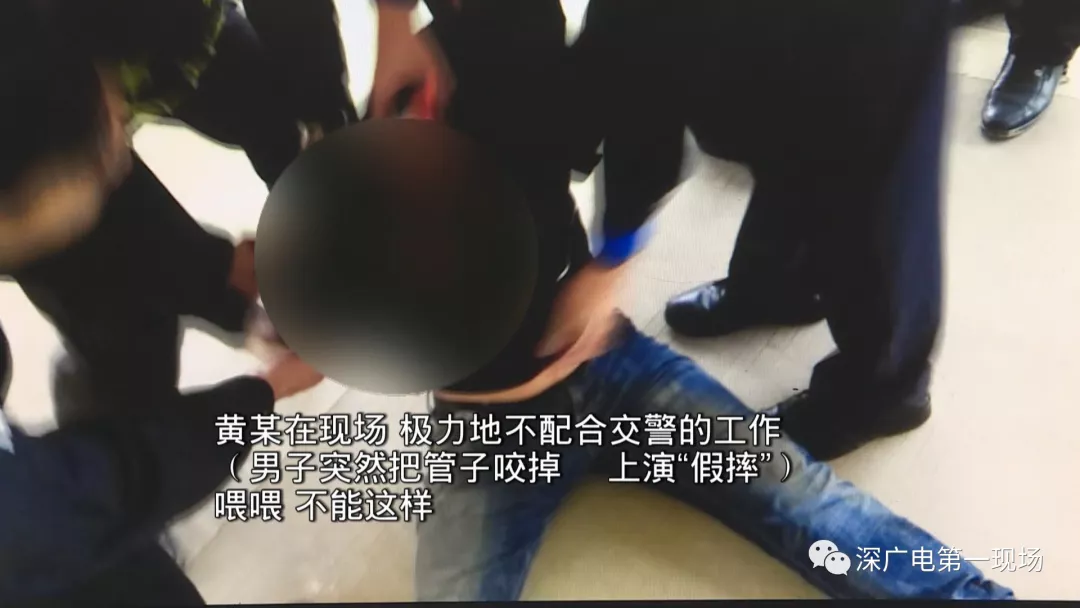 面對如此危險的行為,加油站工作人員報警求助。眼見事情不妙,黃某試圖開溜,被及時攔下。