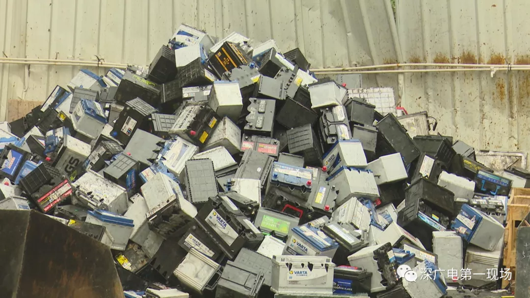 這是昨天下午2點多,記者跟隨南山區(qū)環(huán)保水務(wù)執(zhí)法人員,到現(xiàn)場查處時看到的情形。一處近500平米廢品回收場站內(nèi),廢舊電池堆積如山。