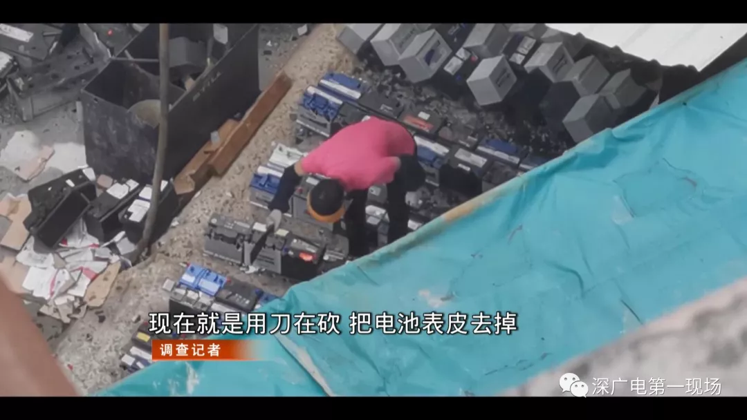 在前期的暗訪中記者發(fā)現(xiàn),3名工人拿著類似砍刀的工具,用簡單粗爆方法,對電池進(jìn)行拆解,帶有強(qiáng)腐蝕性的電池廢液,無任何處理,滿地橫流。