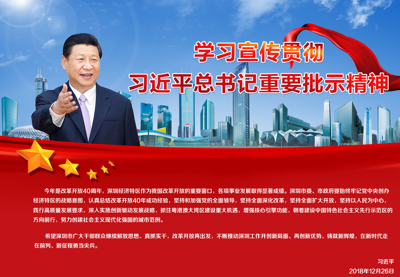 2018年12月26日,習(xí)近平總書記對深圳工作作出重要批示。全文如下: