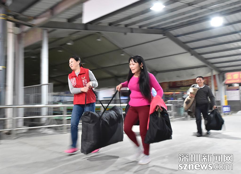 深圳義工在現(xiàn)場(chǎng)協(xié)助乘客搬運(yùn)行李