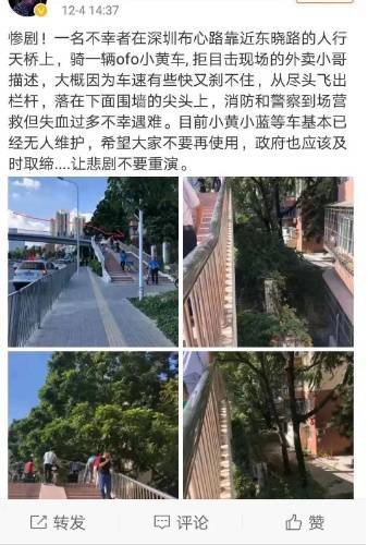羅湖一路人騎共享單車飛落天橋墜亡,深圳交警公布事故原因