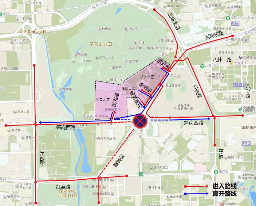 去往市政設(shè)計大廈及福田稅務(wù)局的車輛,交通調(diào)整為:紅荔路 -華富路。
