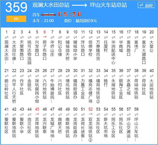 起訖站:坪山火車站總站——龍崗長途客運站