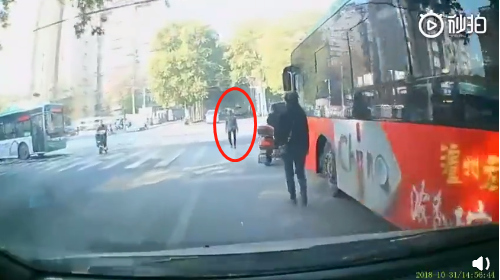 從視頻中可以看到,在小車正前方不遠(yuǎn)處,一老太太迎面走來(lái),小車行駛到人行道附近時(shí)停下等待行人通過(guò)。