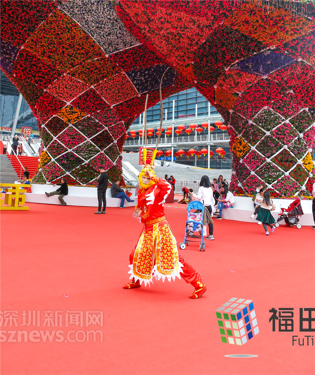 熱鬧的花市也吸引了“猴哥”過(guò)來(lái)捧場(chǎng)。