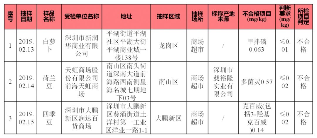 蔬菜有3份抽樣樣品不合格