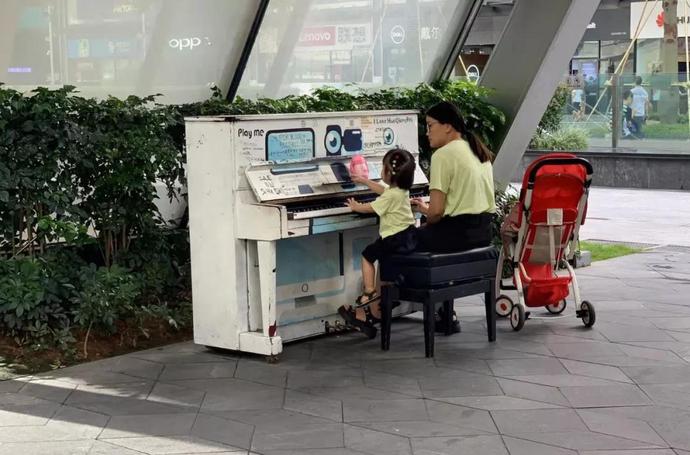 華強(qiáng)北街頭還擺放了公共鋼琴可供免費(fèi)彈奏