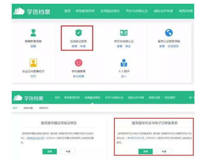 登錄之后,點(diǎn)擊“申請(qǐng)?jiān)诰€驗(yàn)證報(bào)告”,選擇查看《教育部學(xué)歷證書電子注冊備案表》。