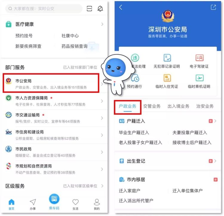 同時(shí),市民也可從“深圳公安”微信公眾號(hào)菜單欄,進(jìn)入“民生”欄目中的“戶政業(yè)務(wù)”板塊,在線辦理上述服務(wù)。