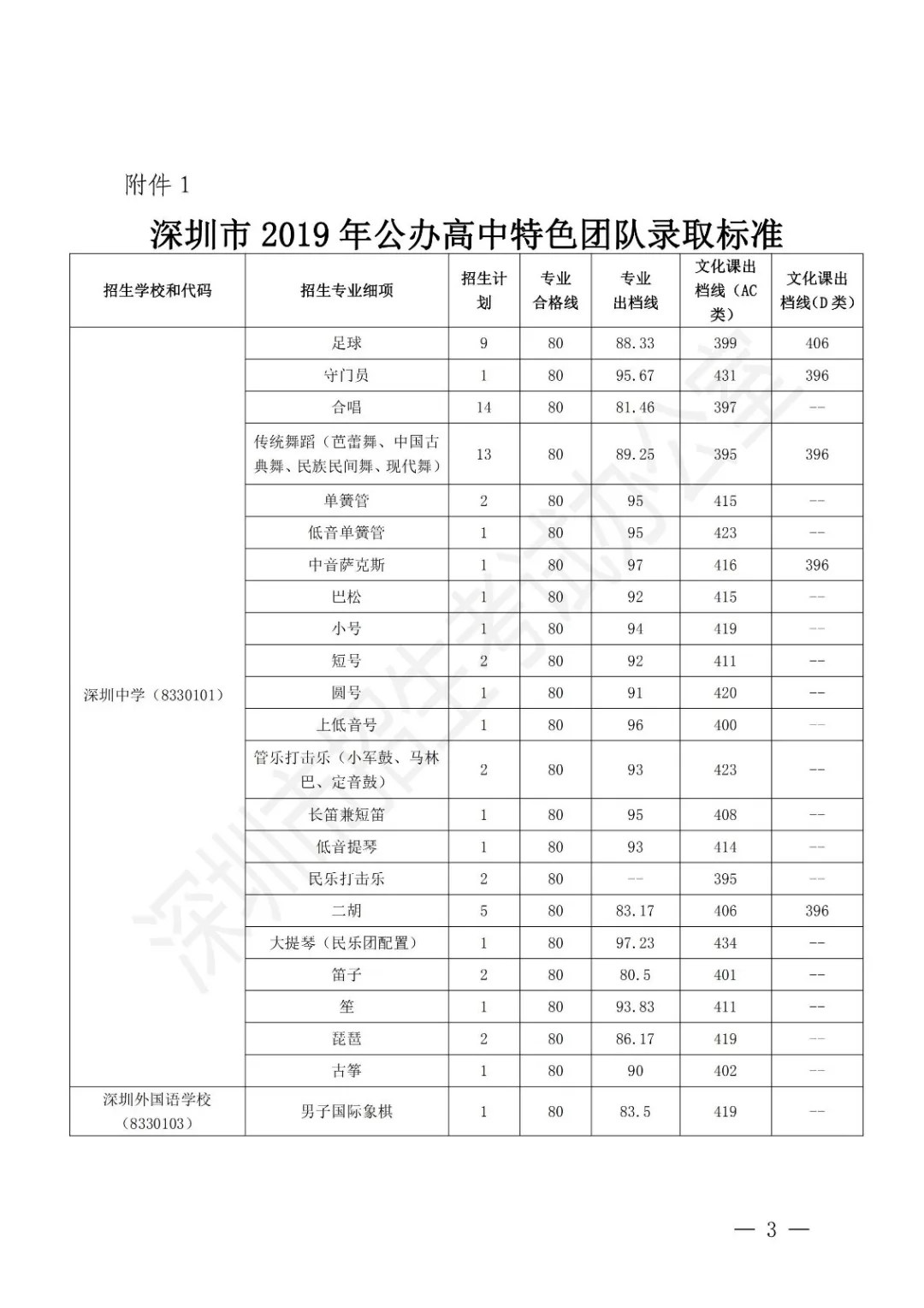 深圳市2019年公辦高中特色團(tuán)隊(duì)錄取標(biāo)準(zhǔn)
