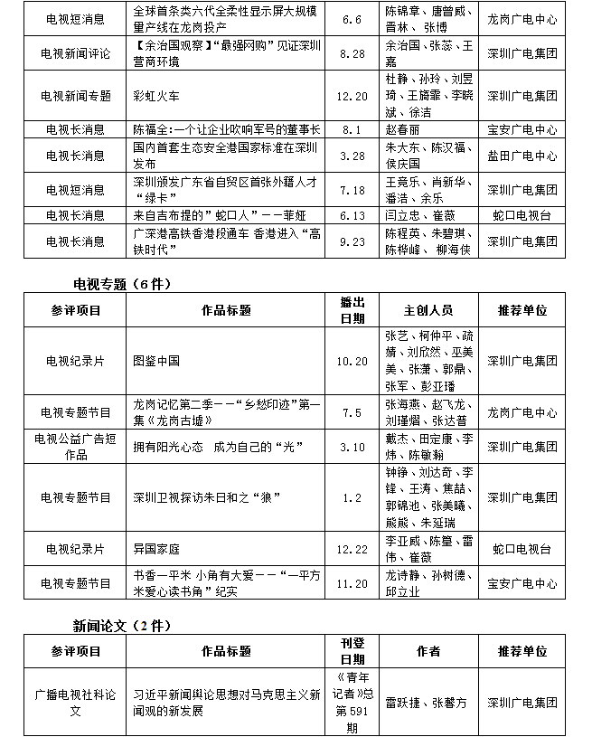 第26屆(2018年度)深圳新聞獎獲獎作品目錄