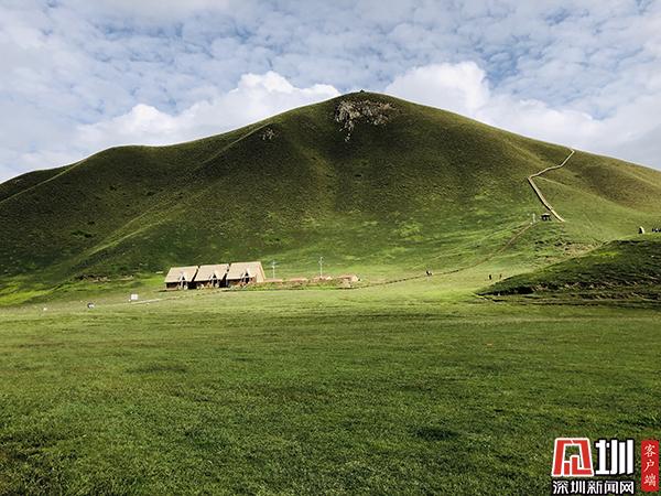 次日早上起來,見昆侖雪山近在咫尺,陽光照射在雪山頂上,倍感圣潔耀眼。雪山下面是綠綠的草原,草原上羊兒成群,馬兒四處奔跑,加上白色的蒙古包點綴其中,風(fēng)景十分迷人。身在草原上周身舒暢,心情自然也明朗起來。一條木制棧道沿山而上,像條長龍盤旋在山上,登高望遠(yuǎn),風(fēng)景如畫。