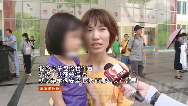 家人通過監(jiān)控了解到,當(dāng)時藍藍的媽媽正在挑選商品,藍藍和其他小朋友就在旁邊玩耍,只見她在拐彎的時候不慎撲倒,導(dǎo)致下巴受傷。