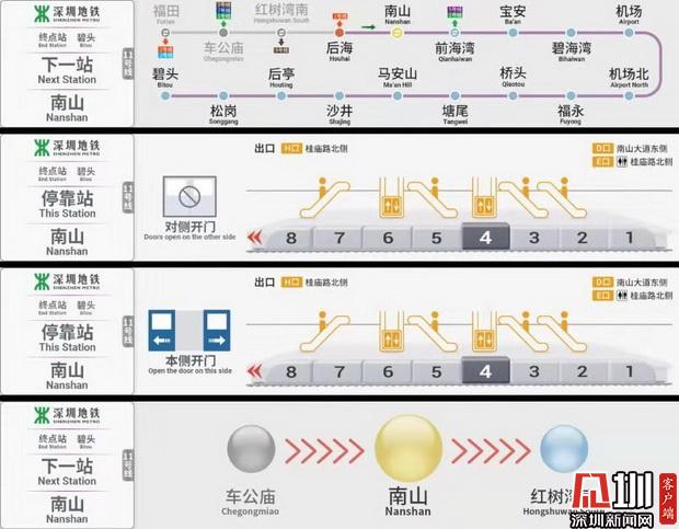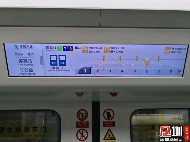 “很多乘客到站下車后,都要跟著車站標(biāo)識去尋找電梯、換乘通道以及出入口的位置,尤其是在高峰時段,會非常的擁擠。”深圳地鐵運(yùn)營集團(tuán)相關(guān)負(fù)責(zé)人說,新界面所顯示的信息內(nèi)容是實(shí)時更新的,其中下一站點(diǎn)的站內(nèi)信息界面,可方便車廂乘客提前了解當(dāng)前車廂位置以及電梯口、洗手間和出入口等相關(guān)設(shè)施位置,待列車到站后便可快速找到想前往的地點(diǎn),大幅度節(jié)省了乘客出行的時間。