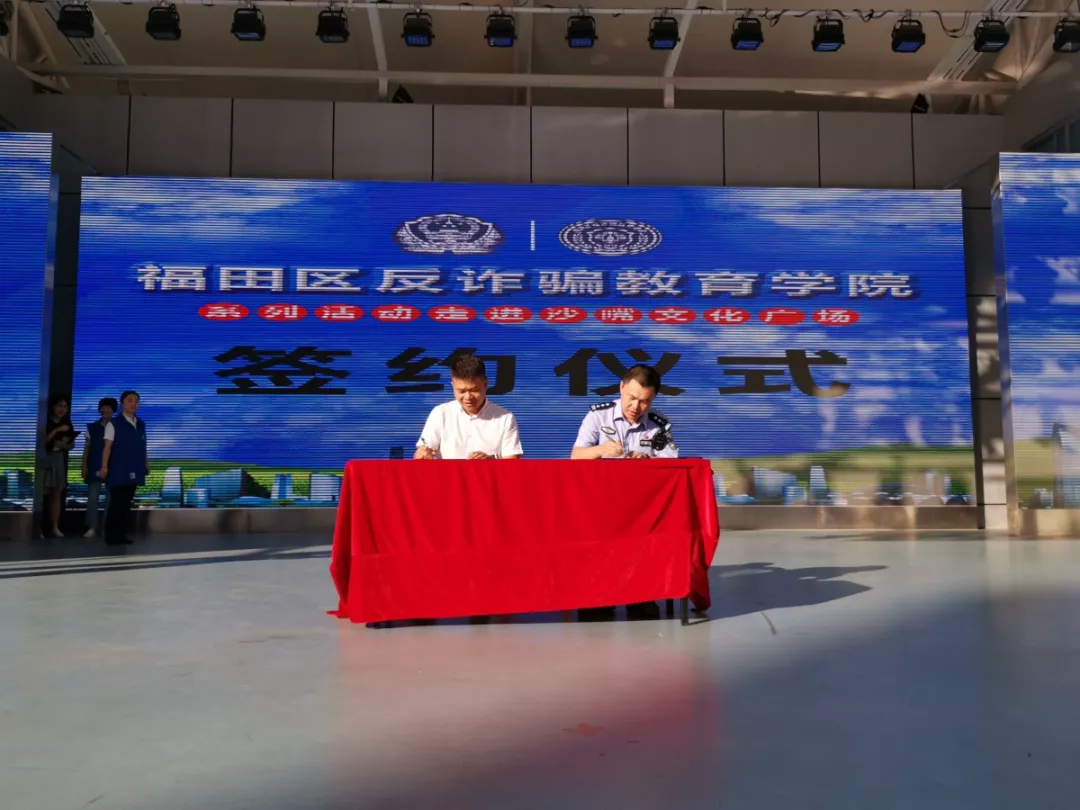 活動(dòng)現(xiàn)場(chǎng),肖劍平所長(zhǎng)與沙頭街道辦黨工委副書記熊新清及沙嘴實(shí)業(yè)股份有限公司簽署了《福田反詐騙教育專刊》戰(zhàn)略合作協(xié)議。