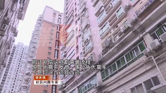 而社區(qū)問(wèn)題專(zhuān)家鄒家健表示,城市的更新改造有一定程序,開(kāi)發(fā)商需要先向政府部門(mén)進(jìn)行報(bào)批,并且按照深圳城市更新政策來(lái)說(shuō),業(yè)主的城市更新意愿應(yīng)當(dāng)達(dá)100%才可以進(jìn)行舊改,并非開(kāi)發(fā)商所說(shuō)的“雙三分之二”。