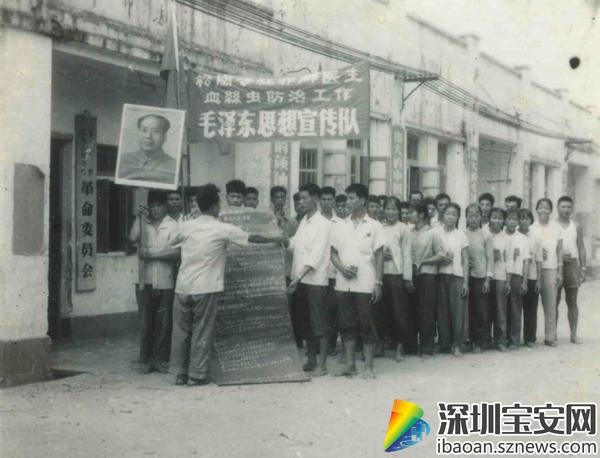 一張泛黃的老照片中,大多數(shù)人物都處在風(fēng)華正茂的年齡,赤著腳,舉著宣傳的橫幅,為血絲蟲病防治工作進(jìn)行宣傳,生動(dòng)地再現(xiàn)了“赤腳醫(yī)生”年代傳染病高居不下,生活艱苦不易,缺醫(yī)少藥的場景。盡管當(dāng)時(shí)的醫(yī)療設(shè)備十分簡陋,除了一個(gè)藥箱,幾片普通的藥片,一支針筒,幾塊紗布,別的就少得可憐。可再苦再難,這些赤腳醫(yī)生們,仍是盡職盡責(zé),滿腔熱情地為人民服務(wù)。