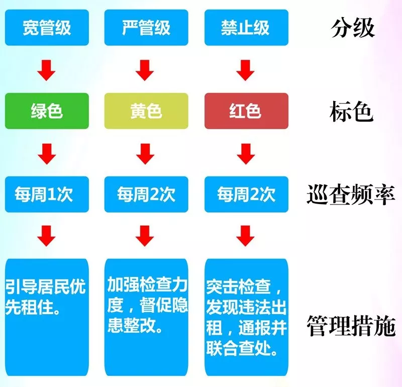 各街道在本轄區(qū)內(nèi)全面落實(shí)出租屋分類分級管理,區(qū)工作領(lǐng)導(dǎo)小組在各街道完成后開展全面驗(yàn)收。