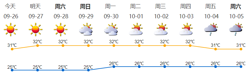晴天干燥;氣溫25-31℃;東北風(fēng)2-3級(jí);相對濕度40%-80%。