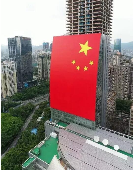 9月14日,一面巨幅國旗在深南大道上的廣電大廈樓宇立面上亮相,壯觀場(chǎng)面刷爆了深圳人的朋友圈。