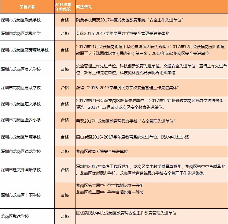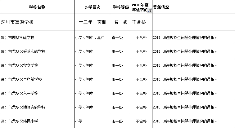 近日,深圳教育局在其官網(wǎng)發(fā)布深圳市民辦中小學(xué)辦學(xué)情況信息公告。最新公告顯示:2018年度年檢結(jié)論為“不合格”的學(xué)校共有8所,“基本合格”的有12所,其他均為“合格”或“不滿一年未年檢”。其中,不合格的8所學(xué)校分別為:深圳市富源學(xué)校、深圳市展華實(shí)驗(yàn)學(xué)校、深圳市龍華區(qū)愛孚實(shí)驗(yàn)學(xué)校、深圳市龍華區(qū)寶文學(xué)校、深圳市龍華區(qū)牛欄前學(xué)校、深圳市龍華區(qū)六一學(xué)校、深圳市龍華區(qū)博恒實(shí)驗(yàn)學(xué)校和深圳市龍華區(qū)偉民小學(xué)。主要涉及違規(guī)招生問(wèn)題。