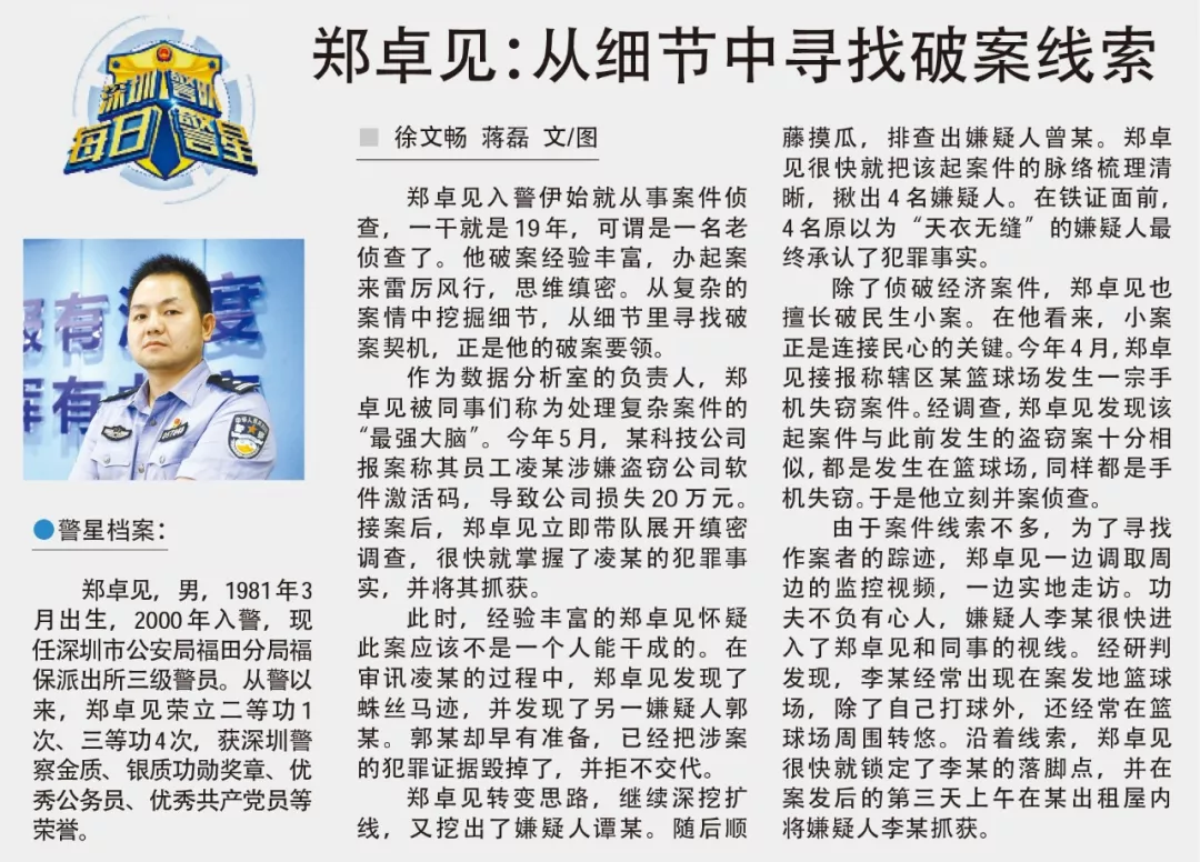 每日警星|鄭卓見:從細節(jié)中尋找破案線索