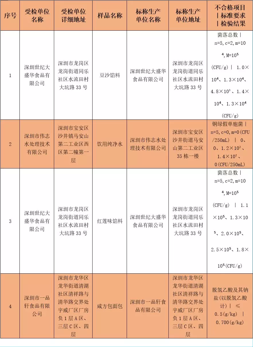 本次不合格食品具體信息如下