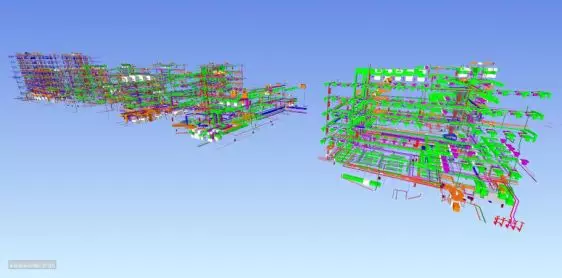 在施工準(zhǔn)備階段,優(yōu)化原設(shè)計圖紙,提前解決施工階段遇到的問題,實(shí)現(xiàn)BIM深化圖指導(dǎo)現(xiàn)場施工放樣及管道安裝,滿足規(guī)范及空間使用要求;施工實(shí)施階段,基于BIM深化模型輸出工程量清單,輔助材料管理人員物資采購管理,支架深化及輸出加工圖,推進(jìn)項(xiàng)目精細(xì)化管理。