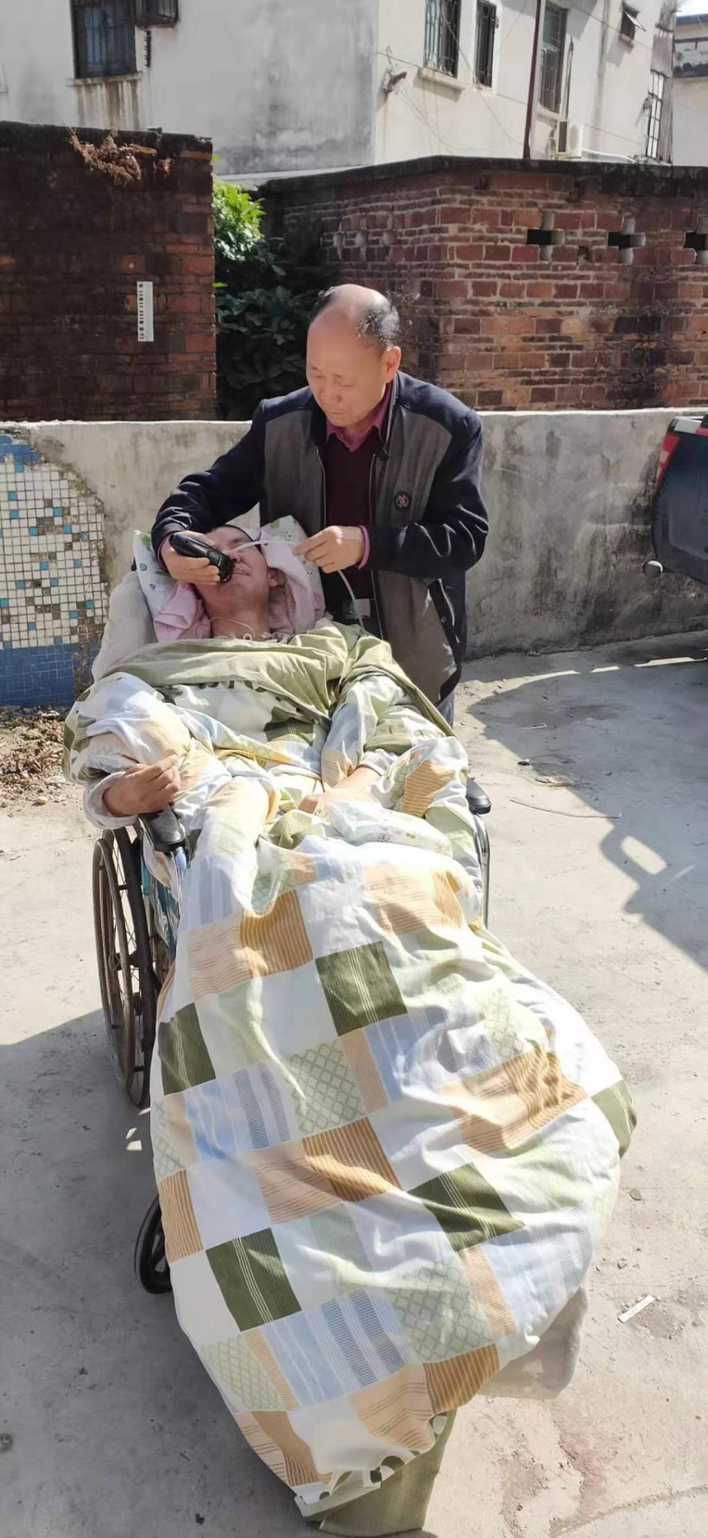 之前,劉林沒有想過照顧一個(gè)植物人這么難。病人吃喝拉撒,都成了他的操心事。因?yàn)橹参锶俗约撼圆涣藮|西,劉林只能把飯菜做成流食,一天喂三頓;每隔2個(gè)小時(shí),劉林就要幫女婿翻身、按摩、拍背,防止身體腐爛。除此之外,劉林還要幫女婿端屎端尿,每天幫忙洗澡、擦身、換洗衣服和床單……在劉林的悉心照料下,劉建榮沒有長過褥瘡,房間也是干干凈凈的,少有異味。