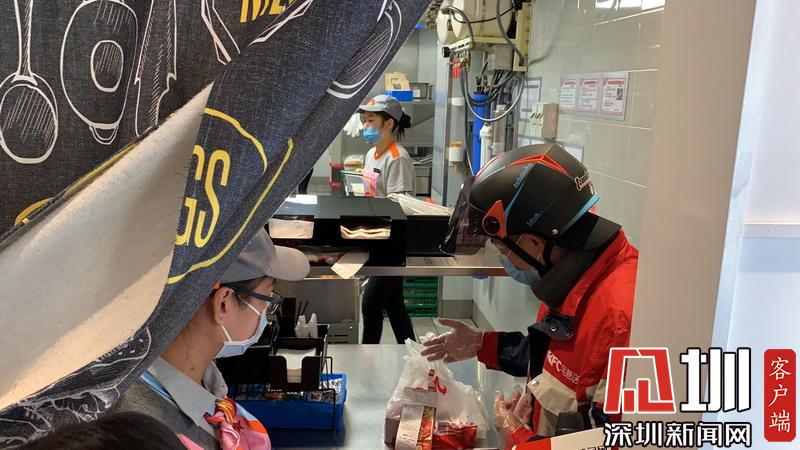 肯德基外賣小哥取餐需消毒。