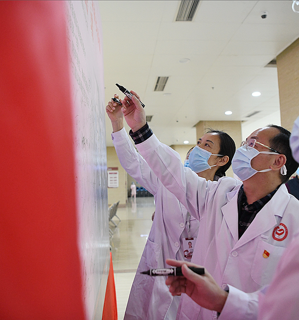 在整個(gè)疫情阻擊戰(zhàn)中,龍崗區(qū)婦幼保健院黨組織自始至終都發(fā)揮著不可替代的先鋒模范作用,在疫情剛開始的時(shí)候,以曹樂勝院長(zhǎng)為首的醫(yī)院黨委就身先士卒緊急行動(dòng)起來(lái)迅速投入到抗病毒戰(zhàn)斗中去。院黨委發(fā)出了通知,號(hào)召?gòu)V大員工積極行動(dòng)起來(lái),投身疫情防控第一線,全院人員迅速響應(yīng),截止2月3日,報(bào)名人數(shù)達(dá)369人,其中黨員112人。醫(yī)院組織了部分代表參加的宣誓儀式,大家激情滿懷地舉起右手,莊嚴(yán)承諾:我將堅(jiān)守初心,勇?lián)姑粺o(wú)條件服從大局,時(shí)刻準(zhǔn)備著聽候組織調(diào)令;立志沖鋒在前,誓到防疫第一線;我必履職盡責(zé),嚴(yán)守規(guī)范,防護(hù)到位,確保零感染;保證與病毒戰(zhàn)斗到底,不打贏這場(chǎng)硬仗絕不收兵。