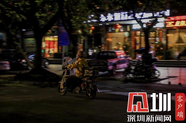 夜幕之下,鮮少行人走動(dòng),路上只見(jiàn)外賣、快遞小哥在奔忙。