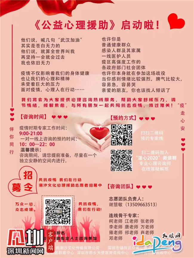 葵涌辦事處壩光社區(qū)婦聯(lián)副主席、大鵬潮汐文化傳播有限公司負責(zé)人謝慧敏積極響應(yīng)新區(qū)群團工作部建立新區(qū)防疫心理疏導(dǎo)志愿服務(wù)隊的號召,聯(lián)合多家機構(gòu)啟動公益心理援助,為市民提供線上調(diào)節(jié)情緒、舒緩壓力等免費心理服務(wù),共渡心理關(guān),服務(wù)將持續(xù)到疫情結(jié)束。