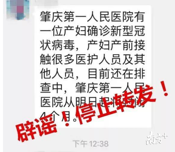 “肇慶第一人民醫(yī)院有孕婦確診,產(chǎn)前接觸很多醫(yī)護(hù)人員?,F(xiàn)在要隔離183人,封閉醫(yī)院四個(gè)月?!苯?,肇慶的微信群中,這條謠言瘋傳,引發(fā)市民恐慌,不敢去醫(yī)院就醫(yī)。