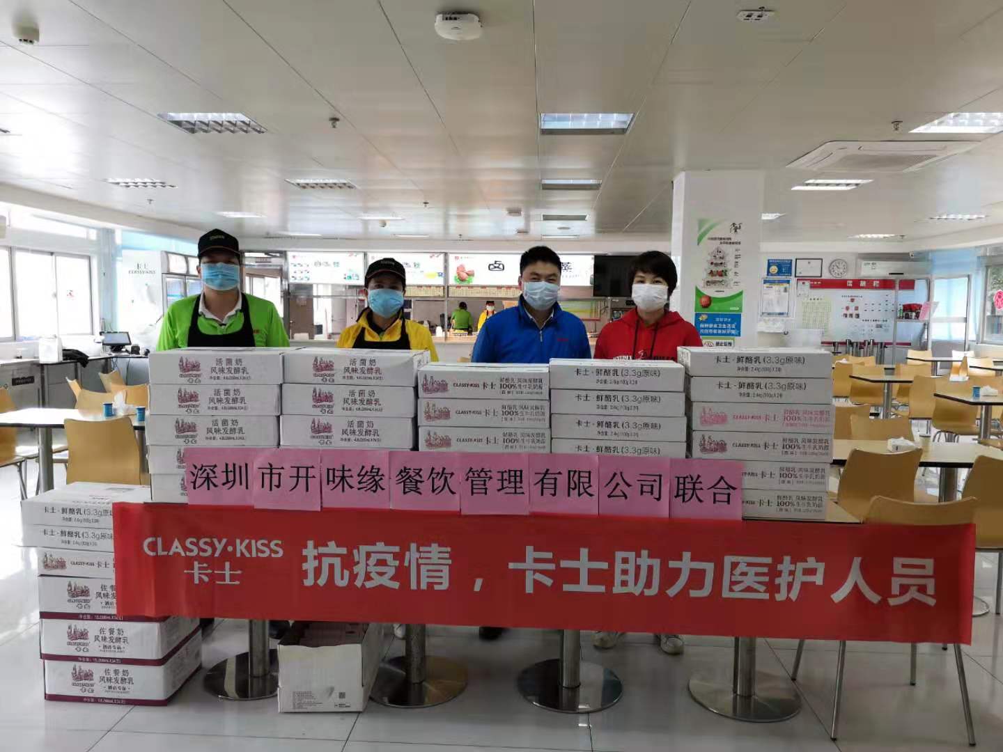 2月5日中午,卡士酸奶有限公司為當(dāng)天在崗的員工送來(lái)價(jià)值2500元的卡士奶300支。