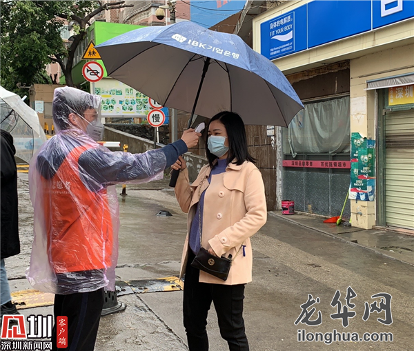 2月14日上午,當(dāng)記者在大浪街道龍勝社區(qū)黨員先鋒崗見到何耀良和孫杰時(shí),他們身上的衣服還在隱約冒著濕氣。原來為了避免下雨時(shí)市民排隊(duì)檢查出入證淋濕了身子,他們冒雨在各測溫點(diǎn)加搭帳篷,顧不上給自己防雨,一會(huì)兒便全身濕透了。“雨這么大,帳篷必須要盡快搭好,那時(shí)候滿心想著都是怎么才能更快一點(diǎn),根本顧不上躲雨啦!”孫杰爽朗一笑道。